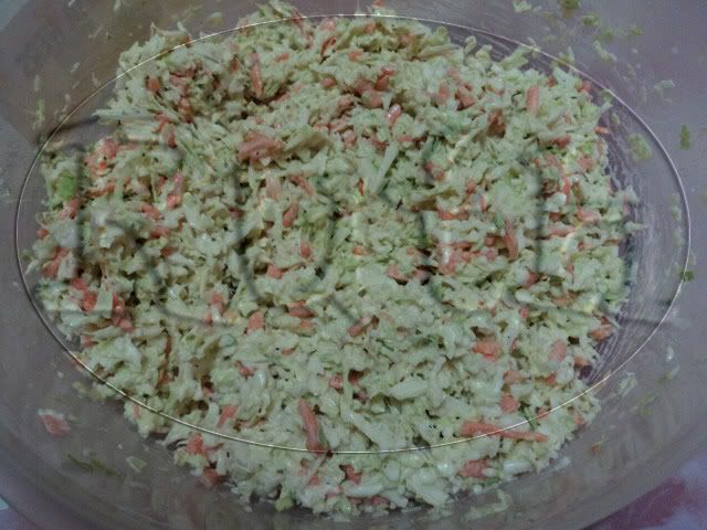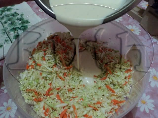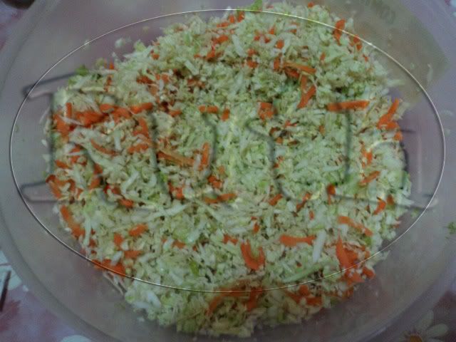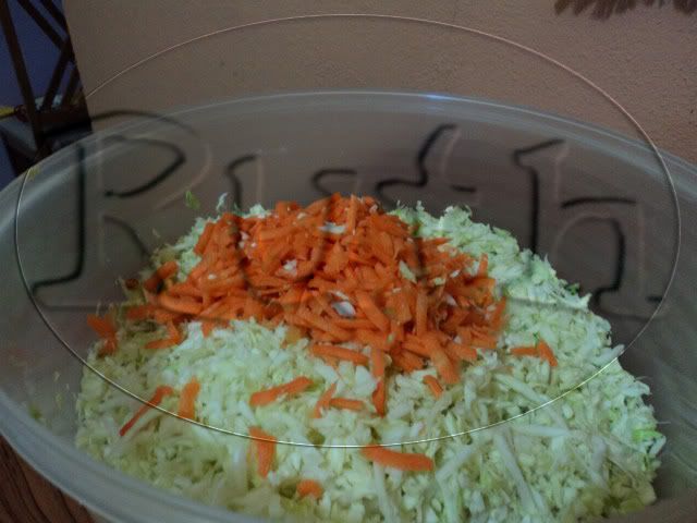Vacía sobre la col y la zanahoria rallada y mezcla bien
